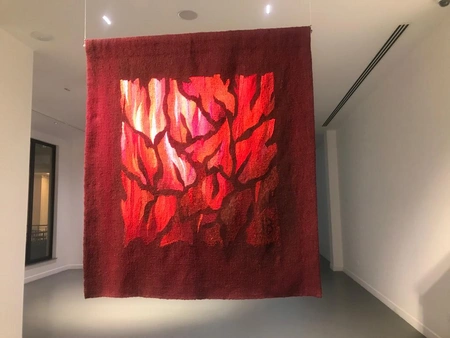 Художница рассказала, что сначала создает эскизы будущего гобелена, а потом ткет его шерстяными нитками на станке, и считает каждую свою работу особенной: