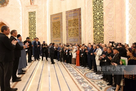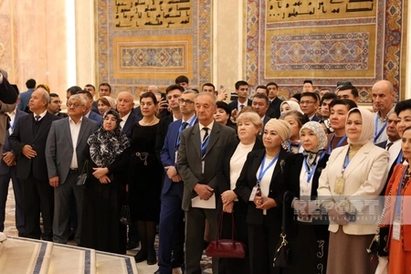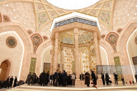 Участники международного конгресса "Духовное наследие и просветительство в Центральной Азии" посетили зал Корана, расположенный в Центре исламской цивилизации в столице Узбекистана Ташкенте.