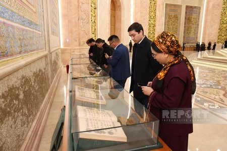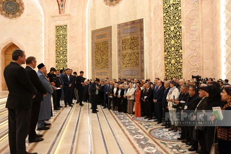 Как передает корреспондент Report из Ташкента, гостям представилась возможность увидеть одну из древнейших сохранившихся в мире рукописей священного писания мусульман.