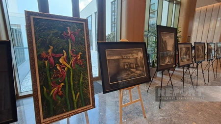 Как сообщает корреспондент Report, выставка организована в отеле "Шуша".
