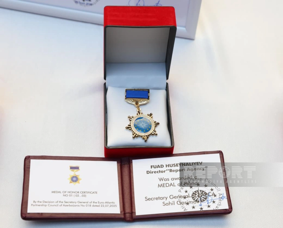 Генеральному директору ООО "Информационное Агентство Report" Фуаду Гусейналиеву была вручена "Почетная Медаль".