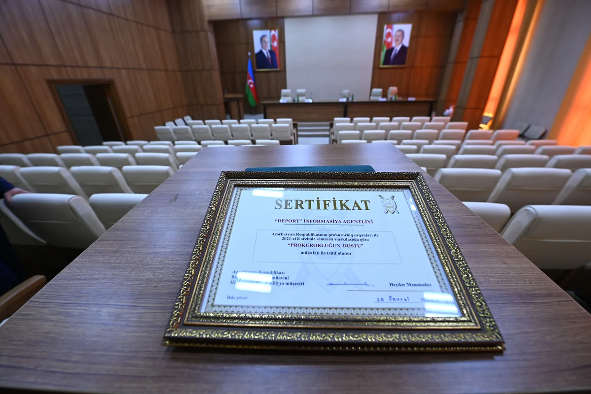 Информационное агентство Report удостоено награды Генеральной прокуратуры Азербайджана в номинации "Друг прокуратуры".