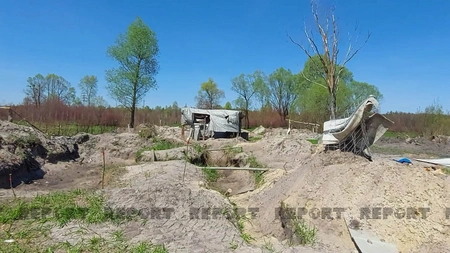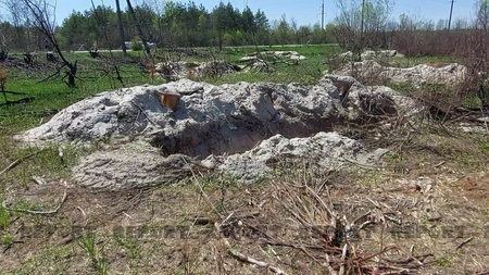 Во время оккупации города российские военнослужащие выкопали здесь многочисленные окопы, устроили огневые точки в направлении Киева. Они даже расстреляли автомобиль дорожной милиции СССР, стоявший как символ при въезде в Чернобыль...