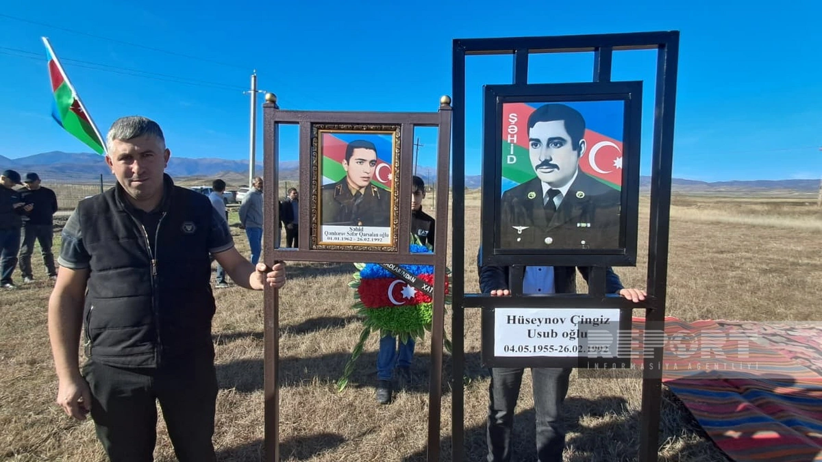 Сегодня на Аллее шехидов в Ходжалы захоронены останки военнослужащих Гусейнова Чингиза Усуб оглу и Гамбарова Сафара Гарсалан оглу, ставших шехидами в боях за Ходжалы во время Первой Карабахской войны.