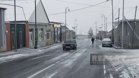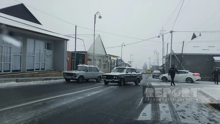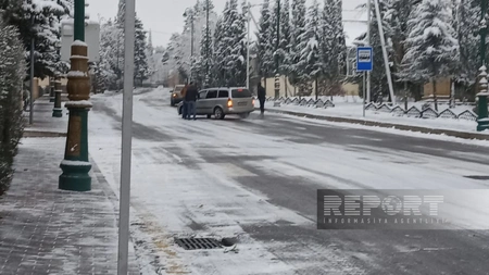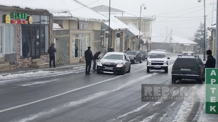 Центральные улицы Огуза покрылись льдом, многие автомобили застряли на дороге.
