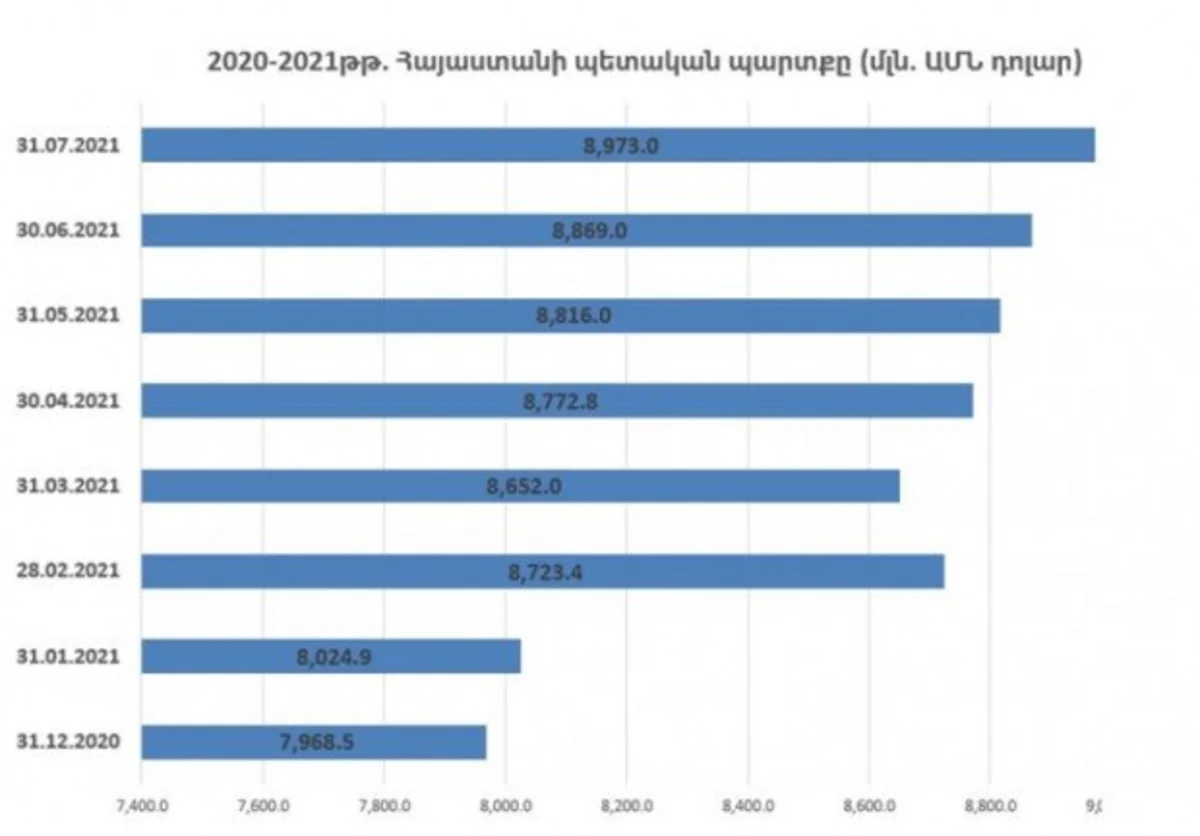 Государственный долг Армении уже превышает 9 млрд долларов США. С января по июль правительство увеличило долг Армении еще на 1 млрд долларов США.