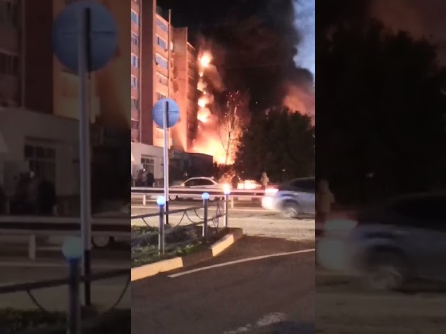 По словам очевидцев, дом горит с первого по девятый этаж. В свою очередь, власти заявили, что огнем охвачены четыре этажа.