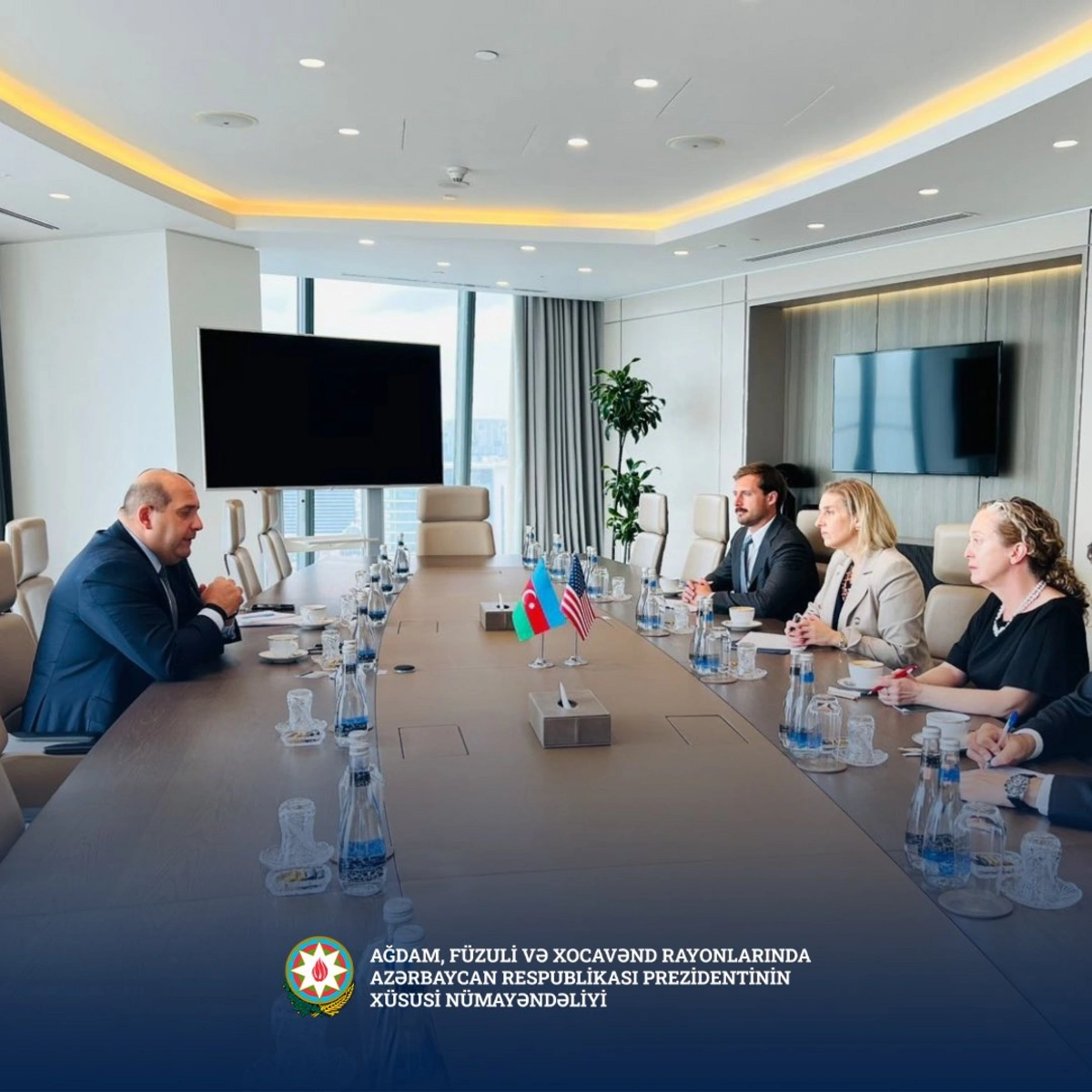"Сегодня состоялась встреча с временным поверенным в делах посольства США в Азербайджане Эми Карлон и несколькими сотрудниками посольства. На встрече обсуждались посещение освобожденных от оккупации территорий и возможности будущего сотрудничества", - отмечается в публикации.
