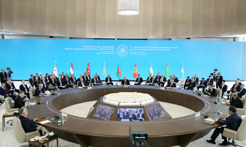 "На 12-м саммите Совета лидеров Организации тюркских государств собрались лидеры Азербайджана, Турции, Казахстана, Узбекистана, Кыргызстана, а также в статусе страны-наблюдателя Туркменистан и Венгрия. ОТГ давно вышла за рамки своего первоначального мандата, содействуя сотрудничеству между тюркоязычными народами. Со временем она расширила задачи до 40 направлений взаимодействия - от инфраструктуры и торговли до водного хозяйства и даже освоения космоса", - говорится в сюжете.