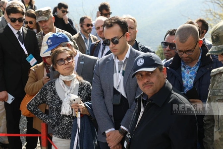 Участники международной конференции на тему "Решение проблемы пропавших без вести: право семей на правду" вместе с представителями аккредитованного в Азербайджане дипломатического корпуса побывали в селе Сырхавенд Агдеринского района на местности, где ранее было обнаружено массовое захоронение.