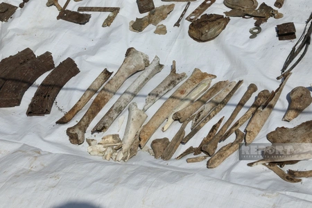 "На протяжении месяца здесь проводились раскопки. В ходе поисковых работ, которые велись в шести точках, были обнаружены фрагменты человеческих костей. На этой территории могут быть обнаружены еще человеческие останки", - сказал Исмаилов.