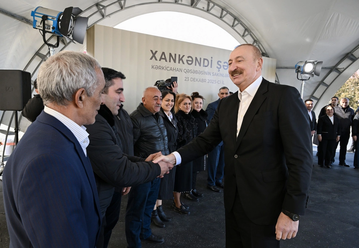 Президент Ильхам Алиев: В конце декабря 1991 года армянское государство изгнало вас с земли ваших предков. Это был конец декабря, а теперь, в конце декабря 2025 года, здесь, на этой земле полностью установилась справедливость. Конечно, нетрудно представить, сколько страданий вам пришлось пережить за все эти годы – и тяжелые жилищные условия, и моральные страдания, и чувство несправедливости. Но, уверен, вы, как и весь наш народ, верили, что настанет день и мы вернемся сюда. Два года назад в результате антитеррористической операции поселок Кяркиджахан вместе с городом Ханкенди был освобожден от оккупантов, и здесь уже заново строится жизнь.