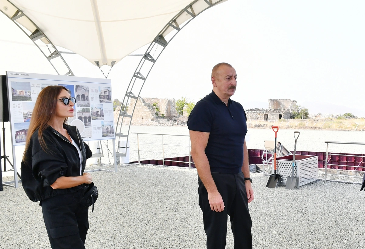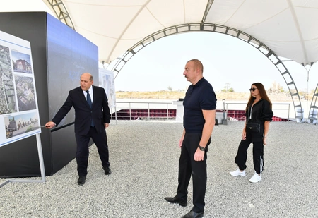 Президент Азербайджанской Республики Ильхам Алиев и первая леди Мехрибан Алиева также приняли участие в церемонии закладки фундамента села Хыдырлы Агдамского района.