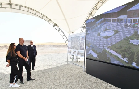 Президент Ильхам Алиев заложил фундамент села Хыдырлы.