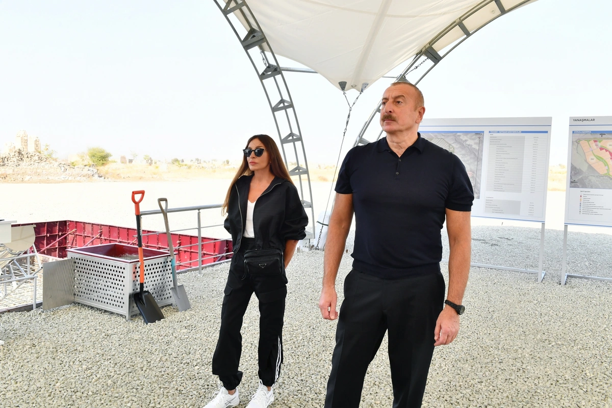 Президент и первая леди приняли участие в церемонии закладки фундаментов сел Кянгярли, Хыдырлы и Сарыджалы
