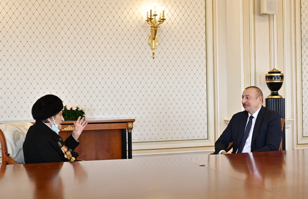 Президент Ильхам Алиев: Ветераны тоже внесли большой вклад в эту победу. Вы являетесь примером для всех нас. Вы проявили героизм, большую самоотверженность во Второй Мировой войне. И впоследствии всегда были активны. Я наградил вас высоким орденом.
