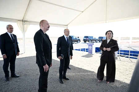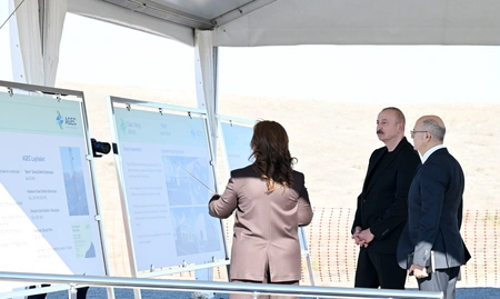 Президент Ильхам Алиев заложил фундамент солнечной электростанции "Шамс", затем принял участие в церемонии закладки фундамента солнечной электростанции "Уфуг".