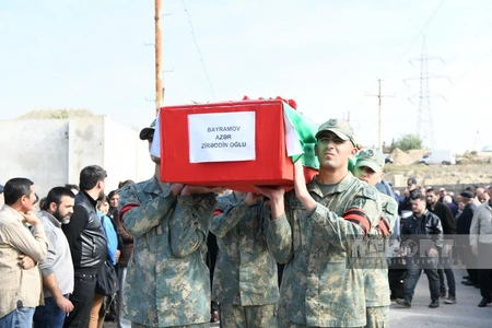 В Хатаинском районе Баку состоялась церемония прощания с шехидом Азером Зиреддин оглу Байрамовым, считавшимся пропавшим без вести в Первой Карабахской войне и останки которого были найдены 33 года спустя.