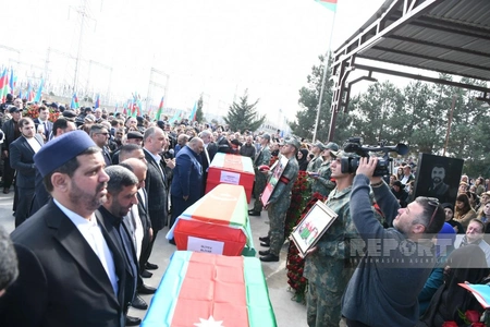 Как сообщает Report, после церемоний прощания с шехидами Азером Байрамовым, Алияром Алиевым и Ильхамом Мехдиевым их останки были захоронены в Аллее шехидов на кладбище "Деде Горгуд" Сураханского района.