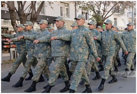Как сообщает корреспондент Report из Ханкенди, марш военнослужащих начался с центральной площади города.