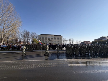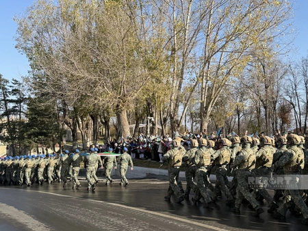 В Шуше проходит марш Победы военнослужащих по случаю 5-й годовщины Дня Победы.