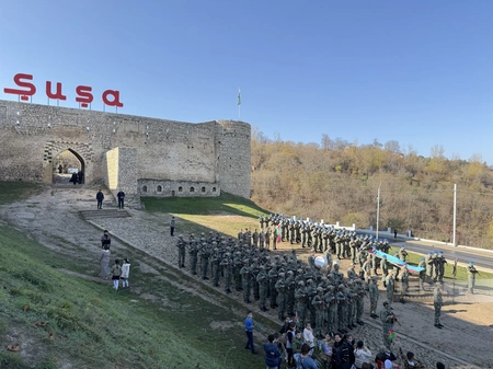 Как сообщает корреспондент Report из города Шуша, марш, начавшийся на Площади флага, завершится у Шушинской крепости.
