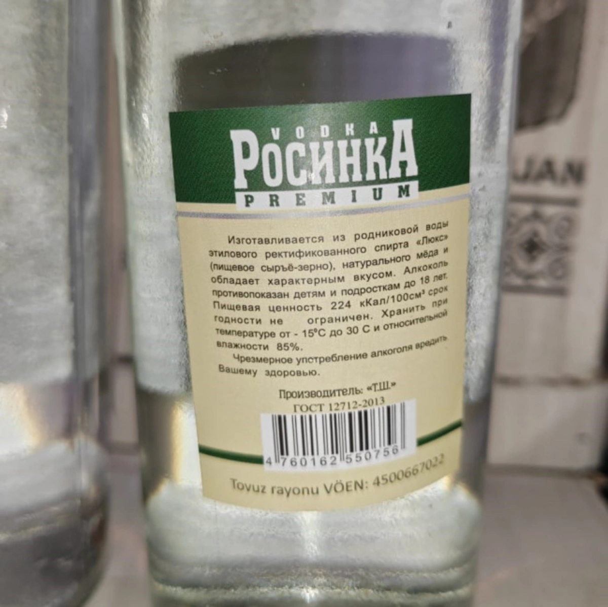 Bildirilib ki, baxış zamanı satış sahəsində aşkar saxtalaşdırma əlamətləri olan "Organic Росинка" əmtəə nişanlı 98 ədəd 0.7 litrlik, 112 ədəd 0.5 litrlik alkoqollu içki aşkarlanıb. Belə ki, içkilərin başlıq hissəsinin təkrar bərkidildiyi, istehsal tarixləri və istehsalçı barədə məlumatların qeyd olunmadığı, saxta VÖEN göstərildiyi, müşayiətedici sənədlərinin olmadığı müəyyən edilib. Məhsullardan nümunələr götürülərək laborator müayinələrə cəlb olunub.