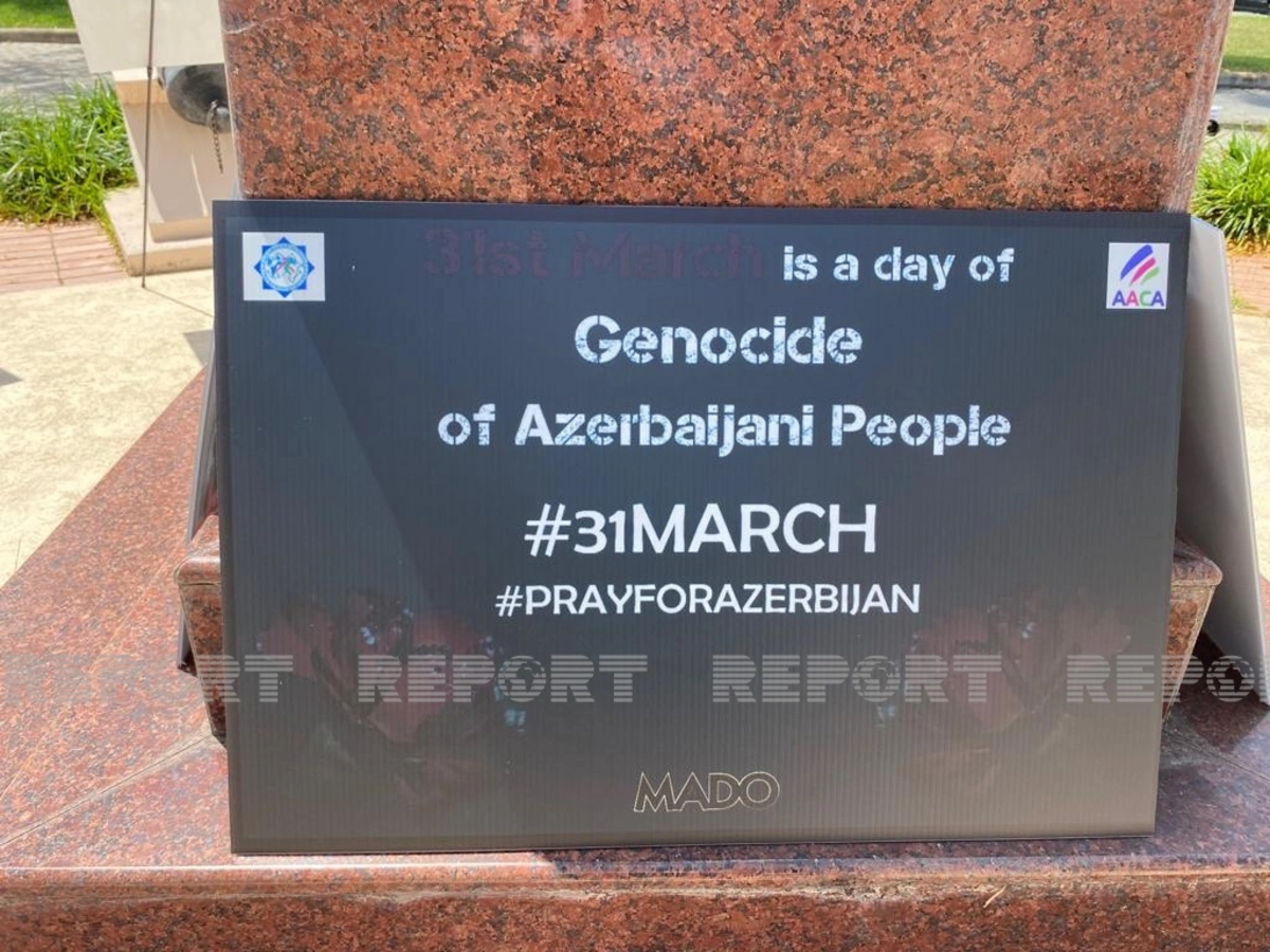 “Report”un yerli bürosu xəbər verir ki, hökumət evinin önündə toplaşan həmvətənlərimiz yerli ictimaiyyəti ermənilərin 1918-ci ildə xüsusi amansızlıq və vəhşiliklə xalqımıza qarşı kütləvi şəkildə törətdikləri 31 mart qırğını və tarix boyu azərbaycanlılara qarşı apardığı soyqırımı siyasəti haqqında məlumatlandırıblar.