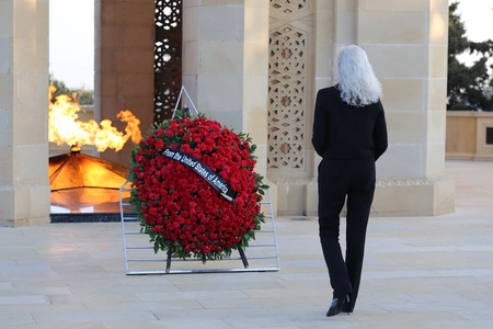 ABŞ dövlət katibinin siyasi məsələlər üzrə müşaviri Elison Huker Şəhidlər xiyabanını ziyarət edib.