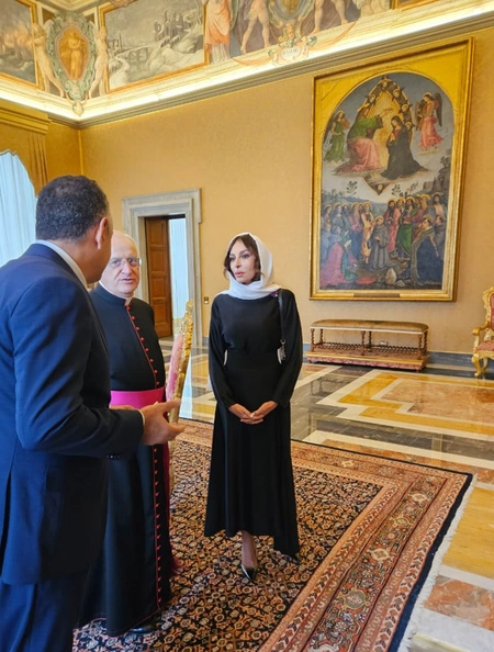 Roma Papası XIV Leo Vatikan dövləti ilə Azərbaycan Respublikası arasında ikitərəfli əməkdaşlığın uzun tarixə malik olduğunu diqqətə çatdırıb. Roma Papası bir neçə il əvvəl Mehriban xanımın irəli sürdüyü təşəbbüslər sayəsində münasibətlərin xeyli inkişaf etdiyini deyərək, Birinci vitse-prezidentə təşəkkürünü bildirib. XIV Leo bu əməkdaşlığın dinlərarası və sivilizasiyalararası dialoqa çox böyük təkan verdiyini, Azərbaycanın da bu baxımdan dünya miqyasında ilk sıralarda yer aldığını qeyd edib.
